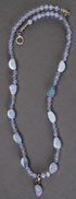 A LADIES CHALCEDONY AND OPAL NECKLACE, LATE 20TH CENTURY. Comprising 66 Namibia blue chalcedony 4 mm beads, and 11 Australian opal doublets in sterling silver bezels with a sterling clasp. Total length 20 inches (51 cm).