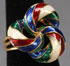 A LADIES 18K GOLD AND ENAMELED DAVIDE MOLINA FASHION RING, 20TH CENTURY. Containing three intersecting red, white, blue and green enameled gold loops, stamped 18k, .750 and “319AL”, size 5 ½, weight 9 grams.