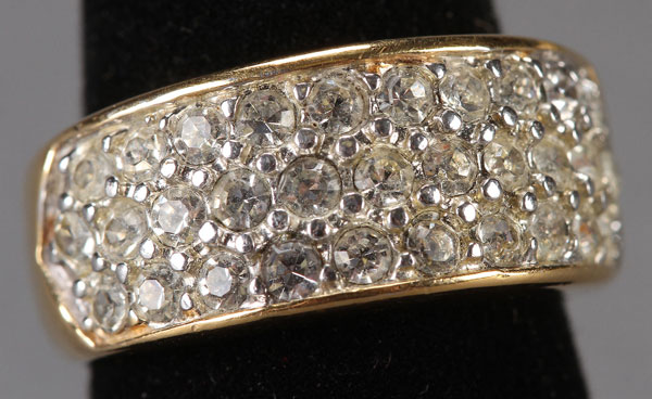 A LADIES 18K GOLD AND DIAMOND RING, 20TH CENTURY. Containing 31 approximately .03 carat diamonds for a total weight of approximately 1 carat. Size 5.75-6.0, total weight 7 grams.