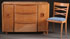 AN EIGHT PIECE HAYWOOD WAKEFIELD DINING ROOM SET, MID 20TH CENTURY. In champagne finish, comprising a M166G drop leaf dining table, a M192 three drawer buffet (length 48 inches), and six M152A side chairs.