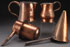 AN 18TH/19TH CENTURY FOUR PIECE COPPERWARE GROUP. Comprising two measures/jugs, and two handled brandy warmers. Largest length including handle 15.5 inches (39 cm).