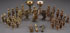 AN ENGLISH BRASS CHESS SET, 20TH CENTURY. Of traditional form. Together with 2 candle stands and figural wax seals. Largest height 4.25 inches (11 cm).