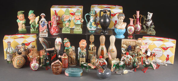 A LARGE COLLECTION OF ITALIAN FIGURAL LIQUOR BOTTLES, MID 20TH CENTURY. Glass and ceramic, including Luxardo, Rynbende and others, many unopened. Over 150 pieces, shown partially illustrated.