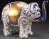 A LARGE ITALIAN MANIFATTURA PORCELAIN ELEPHANT, LATE 20TH CENTURY. Decorated in cobalt under glaze with red oxide over glaze and gilt highlights, with backstamp for Manifattura Artistica le Porcellane and further signed with an applied label inscribed 2905. Length 15.5 inches (39.5 cm).