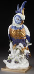 A LARGE ITALIAN MANIFATTURA PORCELAIN FIGURE OF A COCKATOO, LATE 20TH CENTURY. Decorated in cobalt under glaze with gilt highlights, with backstamp for Manifattura Artistica le Porcellane. Some damage and loss. Height 19.5 inches (49.5 cm).