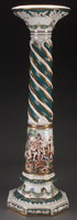 AN ITALIAN CAPO-DI-MONTE STYLE PORCELAIN PEDESTAL, LAST HALF 20TH CENTURY. With embossed and hand painted classical scenes. Height 35.5 inches (90 cm).