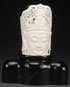 A CHINESE EXPORT CARVED IVORY BUDDHIST BUST, PROBABLY LATE QING DYNASTY. With reticulated crown depicting a seated Buddha and dragon forms, raised on a carved hardwood should form base. Ivory height 6.25 inches (15.9 cm).