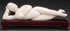 A JAPANESE CARVED IVORY DOCTORS LADY, PROBABLY MEIJI PERIOD. Of reclining form with crossed legs, raised on a carved hardwood stand. Ivory length 6 inches (15.2 cm).
