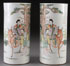 A PAIR OF CHINESE FAMILLE ROSE FIGURES AND DEER PORCELAIN VASES OR HAT STANDS. With calligraphy inscriptions. Height 11 inches (28 cm).