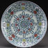 A CHINESE DUCAI STYLE UNDER GLAZE BLUE DECORATED LOW BOWL. With interlocking flowers and Buddhist symbols. Diameter 10.75 inches (27.2 cm).