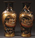 A PAIR OF MONUMENTAL PALACE SIZED CHINESE FLOOR VASES, 20TH CENTURY. Each decorated in two-tone gilt, silvering, and copper enamel; with elaborate village scenes of figures, pagodas, and bridge; on a black ground with raised enamels. Height 37 inches (94 cm).