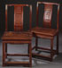 A PAIR OF CHINESE CARVED ROSEWOOD YOKE BACK SIDE CHAIRS, LATE 19TH/EARLY 20TH CENTURY. The backsplats with carved archaic scroll panels and calligraphy inscriptions. Height 38.5 inches (98 cm).