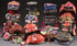 A COLLECTION OF 12 MOSTLY CHINESE MIAO MINORITY EMBROIDERED SILK CAPS, EARLY TO MID 20TH CENTURY. Including wedding and festival styles, many with embossed gilt metal figural attachments some possibly silver. Largest height 12 inches (30 cm).