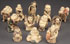 A CASED SET OF 12 CHINESE FAUX IVORY NETSUKES, 20TH CENTURY. Cast resin with incised and polychrome details. Largest height 2.75 inches (7 cm).