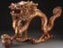 A LARGE AND IMPRESSIVE CHINESE CARVED AND GILT WOOD FIGURE OF A DRAGON, 20TH CENTURY. Carved in arched form with overlapping scales, finished in parcel gilt on a brick red ground. Length 45 inches (115 cm), height 27.5 inches (70 cm).