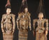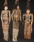 A GROUP OF THREE BURMESE MARIONETTES, 20TH CENTURY. Each in carved wood and gesso with painted features and elaborate stitched gowns with sequined beading and jewelry. Largest length approximately 43 inches (110 cm).