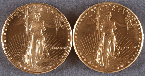 TWO AMERICAN GOLD EAGLES. 1986 and 1987, each $50 1 Troy oz. coins, uncirculated.