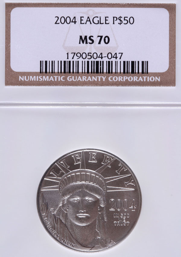 A 2004 AMERICAN PLATINUM EAGLE NGC MS70. $50 platinum coin, .5 Troy oz.