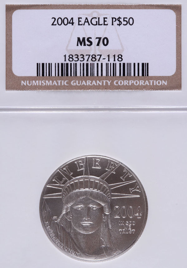 A 2004 AMERICAN PLATINUM EAGLE NGC MS70. $50 platinum coin, .5 Troy oz.