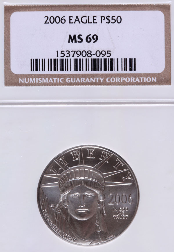 A 2006 AMERICAN PLATINUM EAGLE NGC MS69. $50 platinum coin, .5 Troy oz.