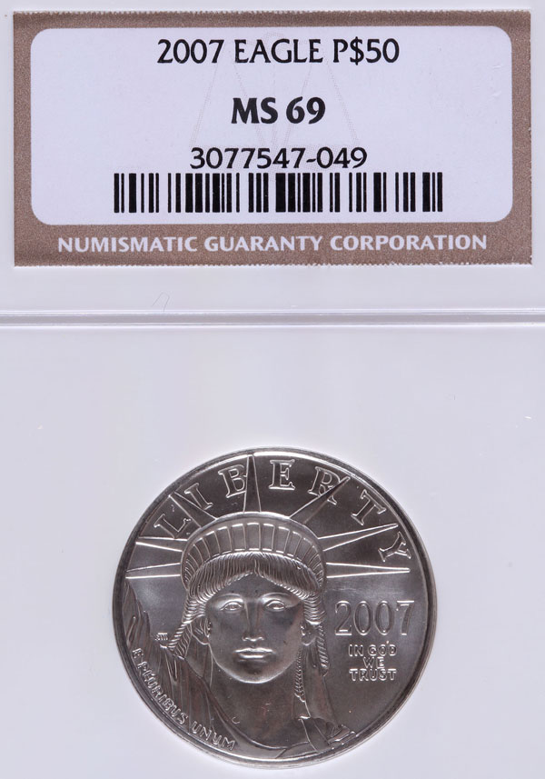 A 2007 AMERICAN PLATINUM EAGLE NGC MS69. $50 platinum coin, .5 Troy oz.