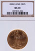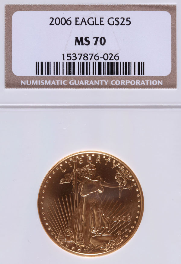 A 2006 AMERICAN GOLD EAGLE NGC MS70. $25 gold coin, .5 Troy oz. gold.
