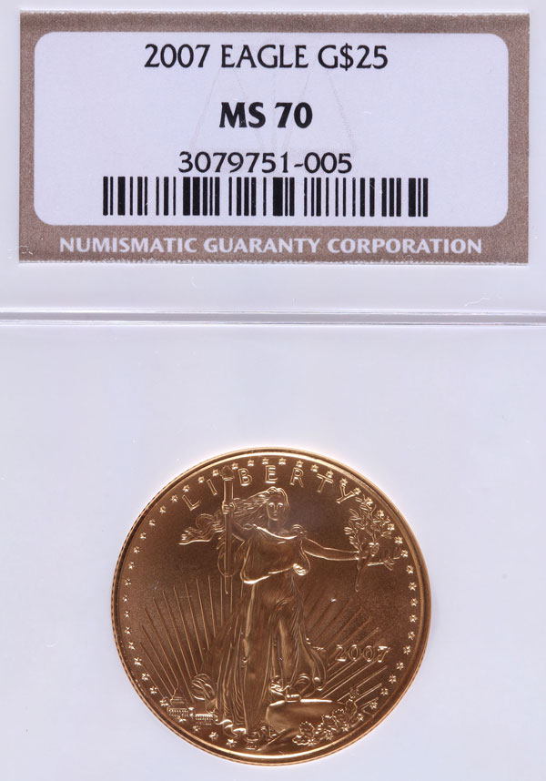 A 2007 AMERICAN GOLD EAGLE NGC MS70. $25 gold coin, .5 Troy oz.
