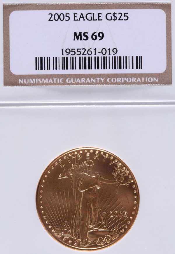 A 2005 AMERICAN GOLD EAGLE NGC MS69. $25 gold coin, .5 Troy oz.