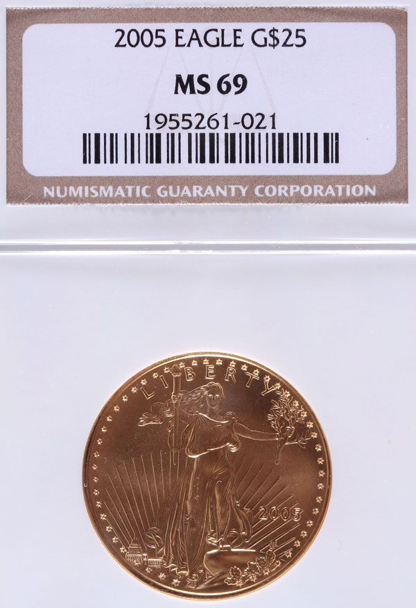 A 2005 AMERICAN GOLD EAGLE NGC MS69. $25 gold coin, .5 Troy oz.