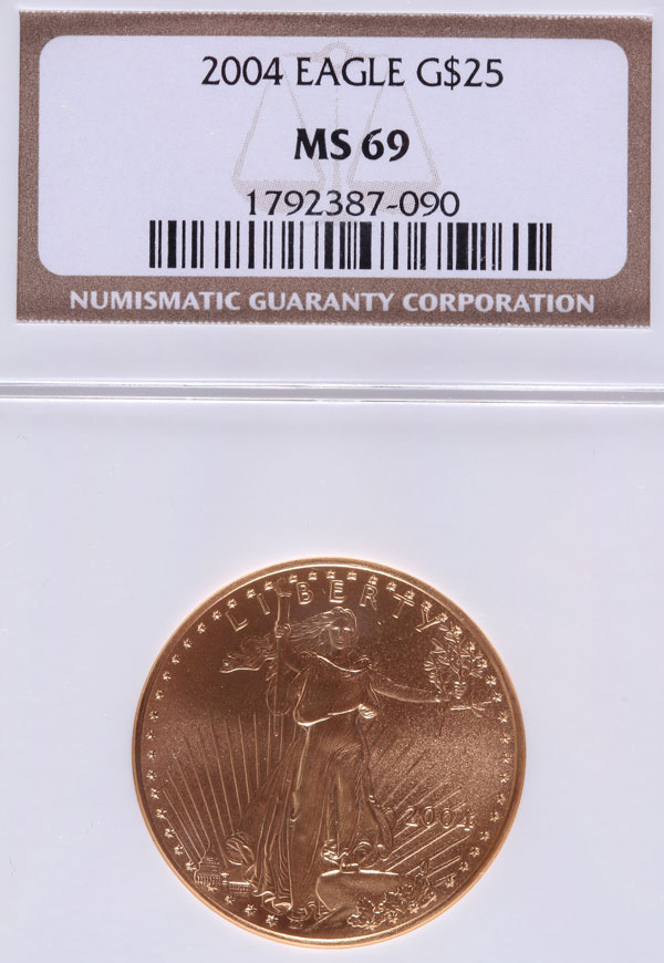 A 2004 AMERICAN GOLD EAGLE NGC MS69. $25 gold coin, .5 Troy oz.