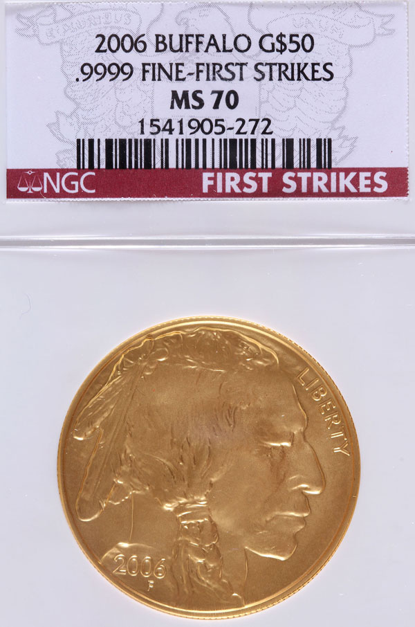 A 2006 AMERICAN GOLD BUFFALO NGC MS70 "FIRST STRIKE". $50 gold coin, 1 Troy oz., with NGC First Strike red label.
