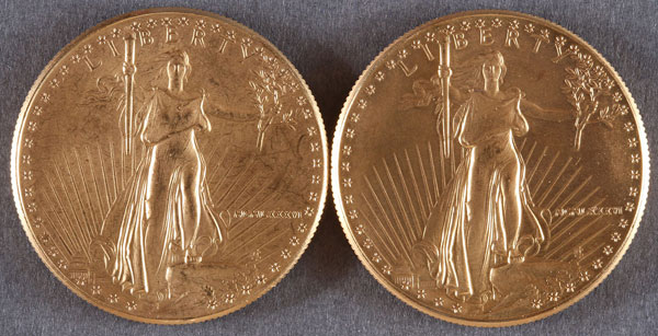 TWO AMERICAN GOLD EAGLES. Each uncirculated 1986 $50 1 Troy oz. coin.