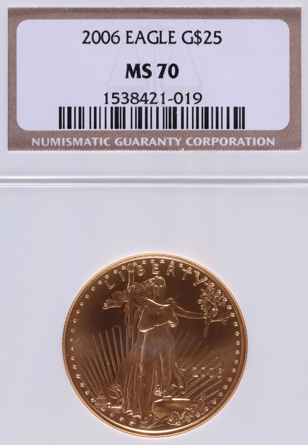 A 2006 AMERICAN GOLD EAGLE NGC MS70. $25 gold coin, .5 Troy oz.