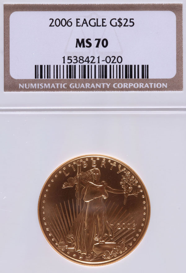 A 2006 AMERICAN GOLD EAGLE NGC MS70. $25 gold coin, .5 Troy oz.