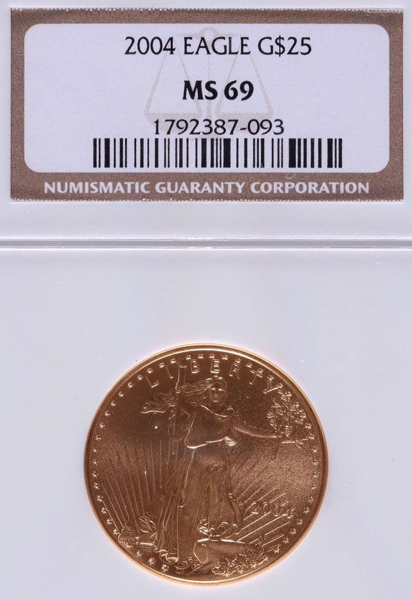 A 2004 AMERICAN GOLD EAGLE NGC MS69. $25 gold coin, .5 Troy oz.