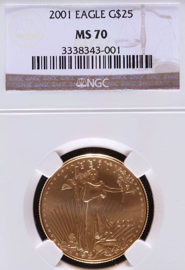 A 2001 AMERICAN GOLD EAGLE NGC MS70. $25 gold coin, .5 Troy oz.