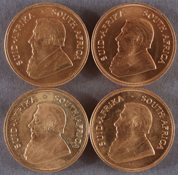 FOUR SOUTH AFRICAN GOLD KRUGGERANDS. Each 1 Troy oz., comprising one 1976, two 1978, and one 1983.