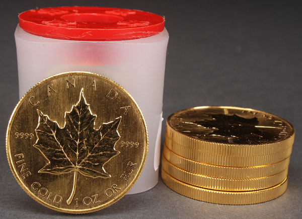 SIX 1983 CANADIAN GOLD MAPLE LEAFS. Each uncirculated $50 coin, 6 Troy oz. total.