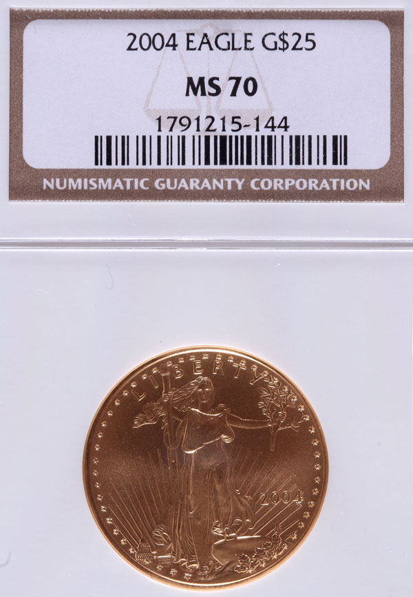 A 2004 AMERICAN GOLD EAGLE NGC MS70. $25 gold coin, .5 Troy oz.