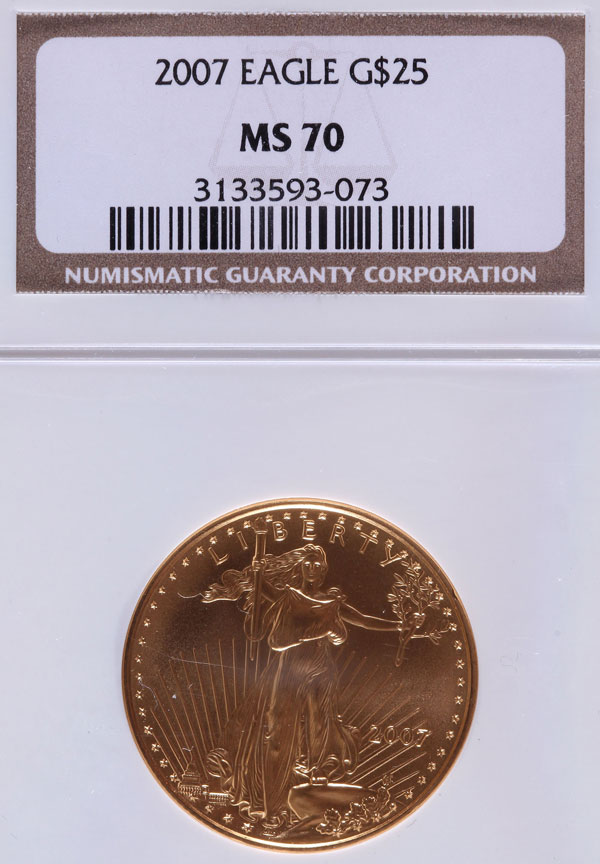 A 2007 AMERICAN GOLD EAGLE NGC MS70. $25 gold coin, .5 Troy oz.