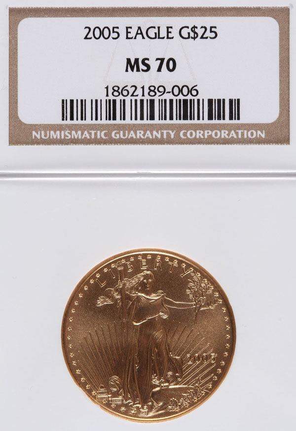 A 2005 AMERICAN GOLD EAGLE NGC MS70. $25 gold coin, .5 Troy oz.