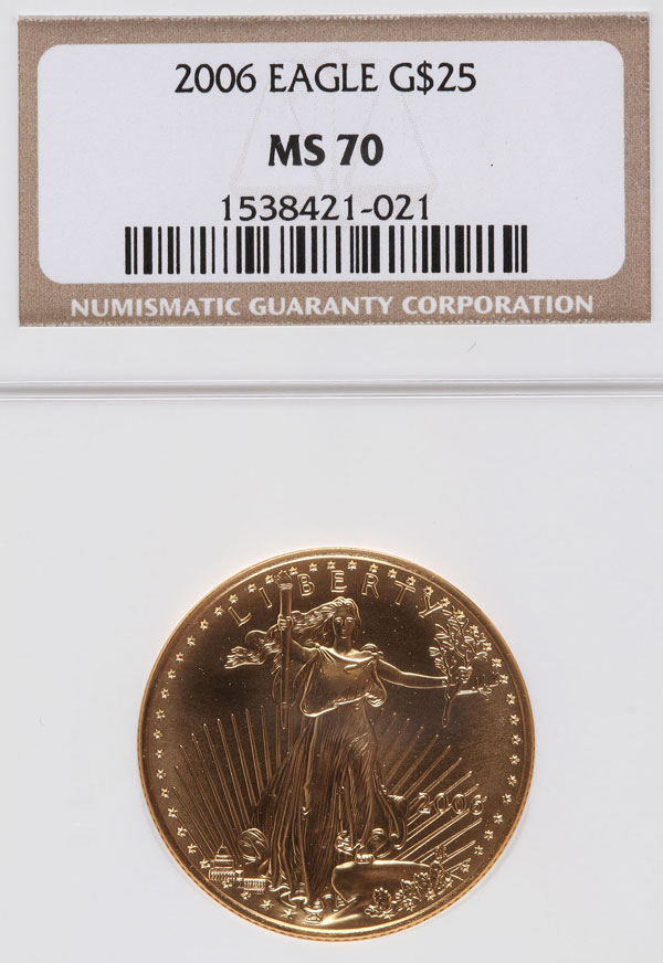 A 2006 AMERICAN GOLD EAGLE NGC MS70. $25 gold coin, .5 Troy oz.