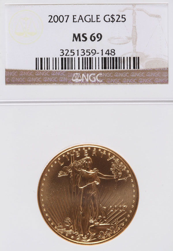 A 2007 AMERICAN GOLD EAGLE NGC MS69. $25 gold coin, .5 Troy oz.