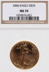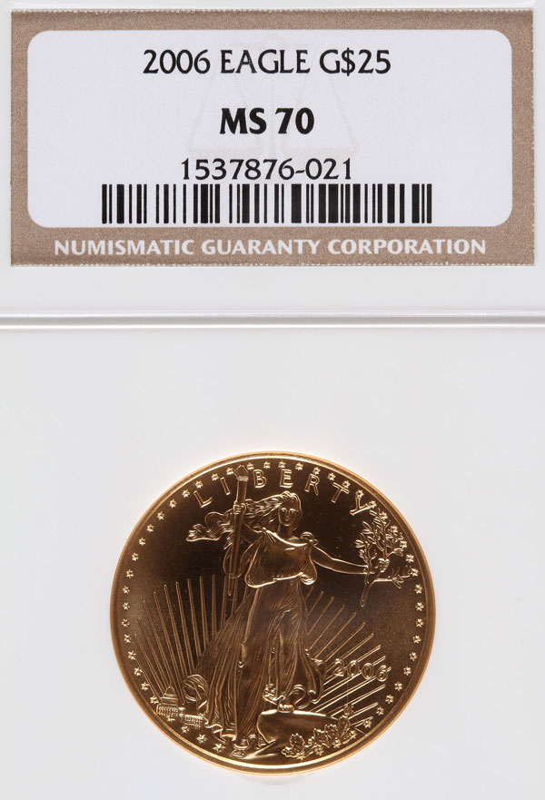 A 2006 AMERICAN GOLD EAGLE NGC MS70. $25 gold coin, .5 Troy oz.
