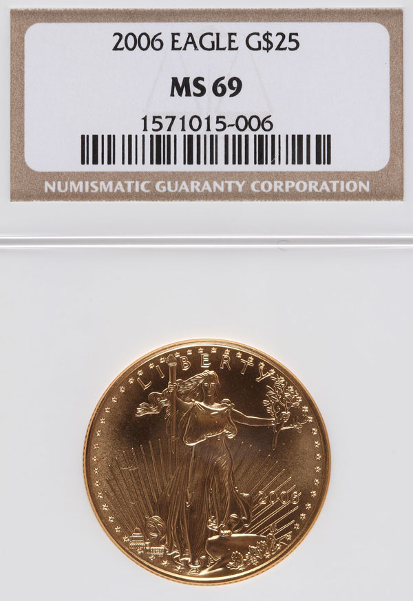 A 2006 AMERICAN GOLD EAGLE NGC MS69. $25 gold coin, .5 Troy oz.