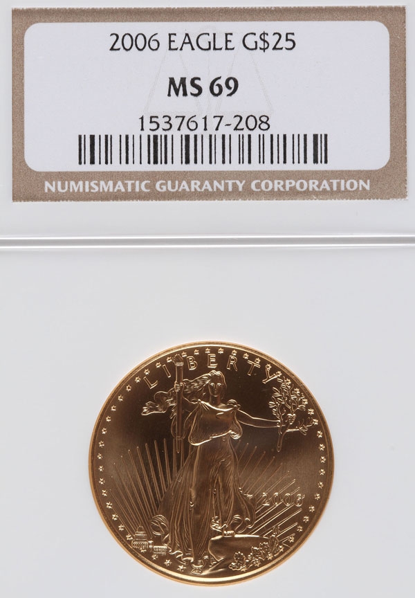 A 2006 AMERICAN GOLD EAGLE NGC MS69. $25 gold coin, .5 Troy oz.