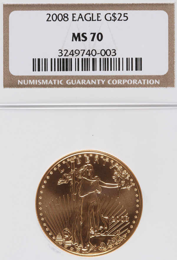 A 2008 AMERICAN GOLD EAGLE NGC MS70. $25 gold coin, .5 Troy oz.