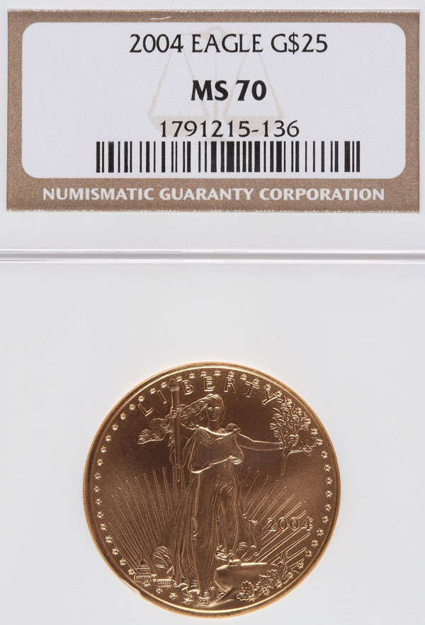 A 2004 AMERICAN GOLD EAGLE NGC MS70. $25 gold coin, .5 Troy oz.