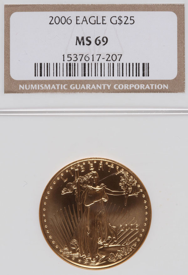 A 2006 AMERICAN GOLD EAGLE NGC MS69. $25 gold coin, .5 Troy oz.
