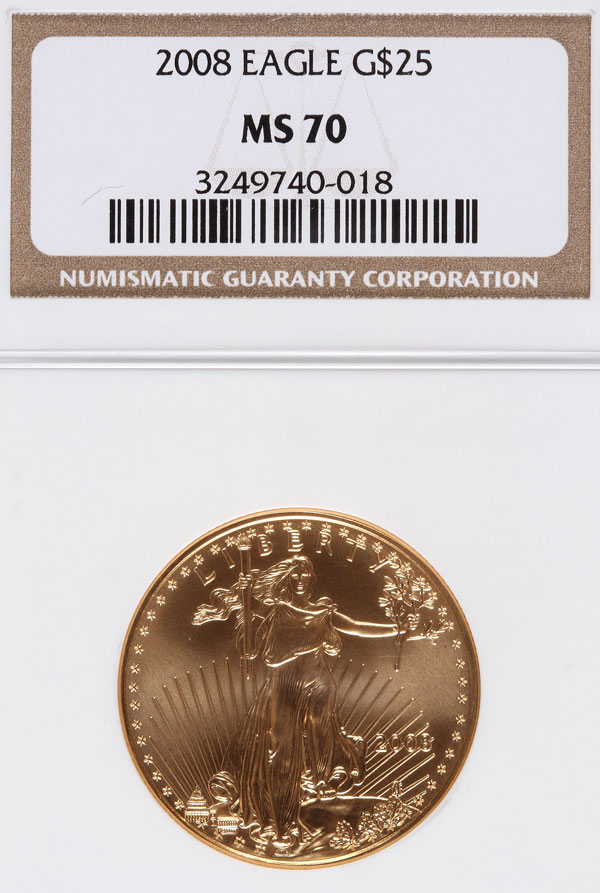 A 2008 AMERICAN GOLD EAGLE NGC MS70. $25 gold coin, .5 Troy oz.
